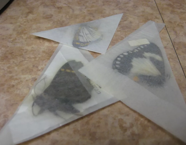 首先将捕获的蝴蝶从三角纸袋中取出还软。